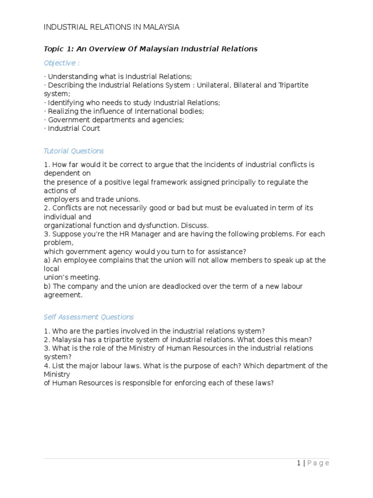 The scope of industrial relations 1967 is huge and it covers many area and scope. What are the alternatives i have if the industrial relations department refused to refer my case to the industrial court? Industrial relations systems in malaysia is recognised as a tripartite system and is made up of 3 groups and ministry of human resources act as a president which bilateral negotiation between employer and employees. This service is provided as a risk management tool to ensure that employers are meeting their statutory employment obligations. Industrial production index, feb 21.