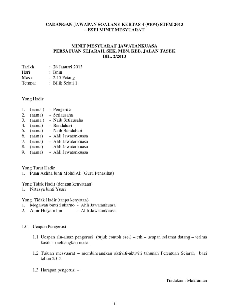 Contoh Minit Mesyuarat Persatuan / Minit Mesyuarat Persatuan Ibu Bapa Dan Guru Studocu / Maybe you would like to learn more about one of these?